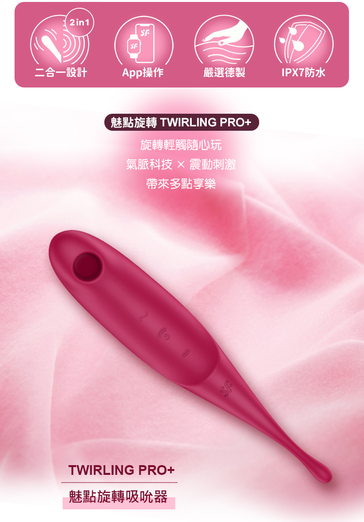 品名:Satisfyer|Twirling Pro+|魅點旋轉吸吮震動器 紅