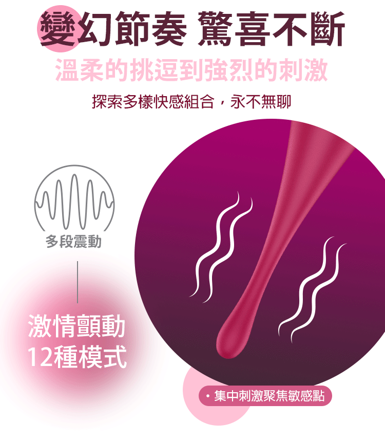 12段震動模式:多樣震動節奏,帶來不同強度快感