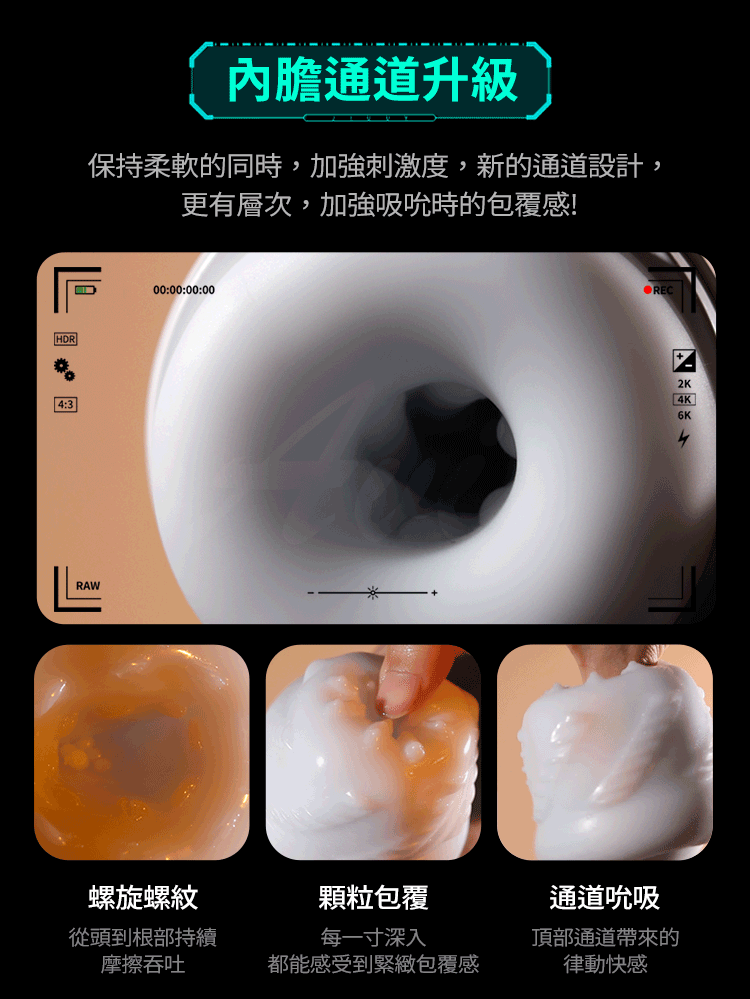 彈性通道自動收縮,模擬真實緊緻包覆感。