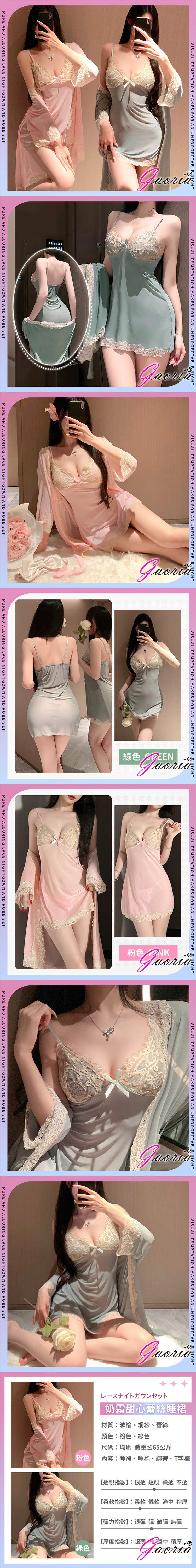 Gaoria|奶霜甜心 純欲蕾絲睡裙外袍套裝 粉